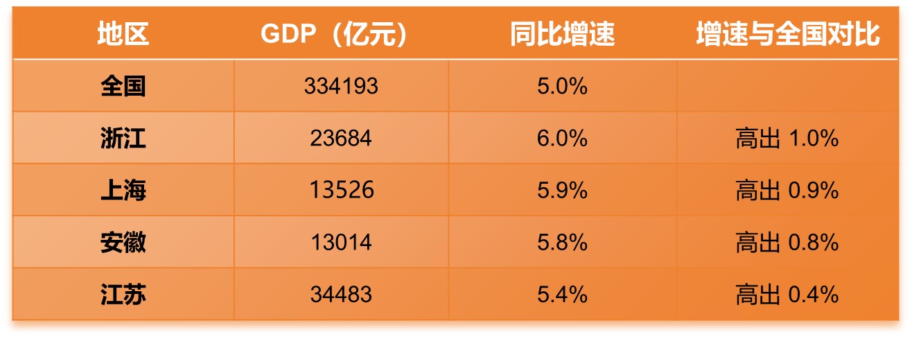 从已公布的数据来看,沪苏浙皖四地GDP增速均高于全国5.0%的平均线,形成了东部地区强有力的增长极。