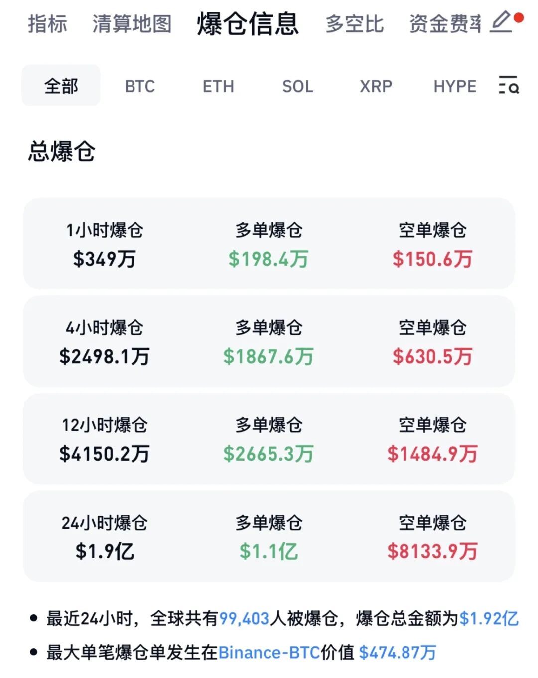 CoinGlass数据显示,最近24小时,全球共有超9.9万人爆仓,爆仓总金额为1.92亿美元。其中,大部分为多单爆仓。