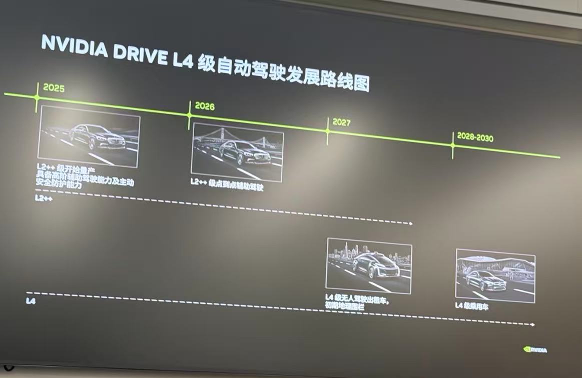 吴新宙还向在场的媒体公布了英伟达L4级自动驾驶发展路线图:2025年完成与奔驰合作的首次量产交付;2026年在美国推进L2++的规模化落地;2027年与谷歌合作在部分城市开始L4试点;2028年携手Uber在洛杉矶奥运会期间提供无人驾驶服务,并计划覆盖20到30个城市。