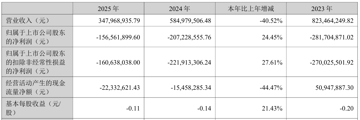 其中第四季度,公司营业收入为4582万元,同比下降70.1%;归母净利润自去年同期亏损8318万元变为亏损5555万元,亏损额有所减少;扣非归母净利润自去年同期亏损9456万元变为亏损5056万元,亏损额有所减少。