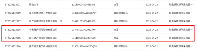 来源:军队采购网、华安财险官网、国任财险官网