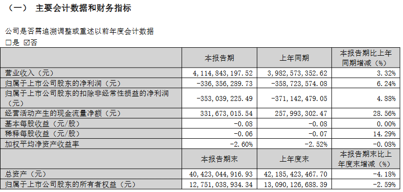 尽管2025年继续亏损,但公司也呈现出一些积极变化。2026年第一季度,公司归母净利润亏损3.36亿元,较上年同期亏损3.59亿元,减亏6.24%;扣非净利润亏损3.53亿元,上年同期亏损3.71亿元,减亏4.88%,显示公司经营压力有所缓解;经营活动产生的现金流量净额为3.32亿元,同比增长28.56%,公司营运资金管理效率提升,造血能力增强。