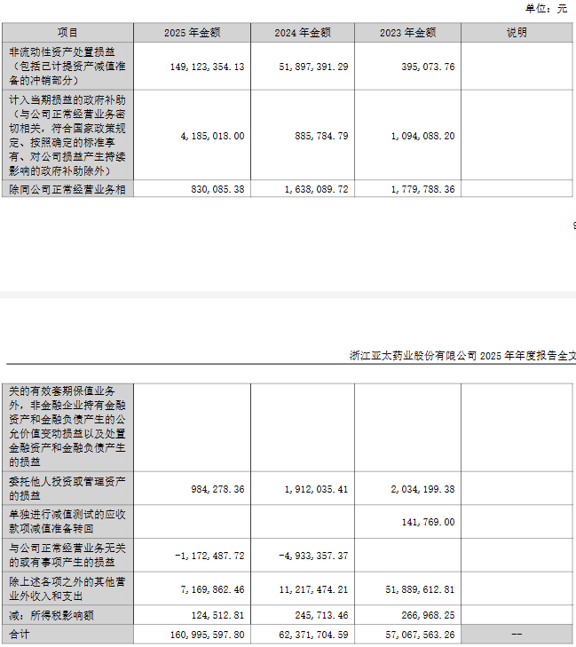 年报显示,2025年公司非经常性损益总额达1.61亿元,占归母净利润比例高达167%。