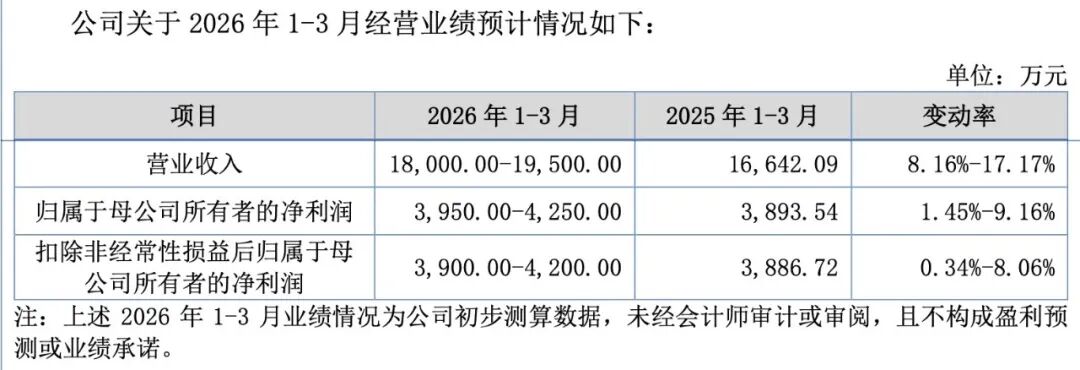 锐翔智能招股书称,预计公司2026年一季度实现归属于母公司所有者的净利润3950万元至4250万元,同比增长1.45%至9.16%。