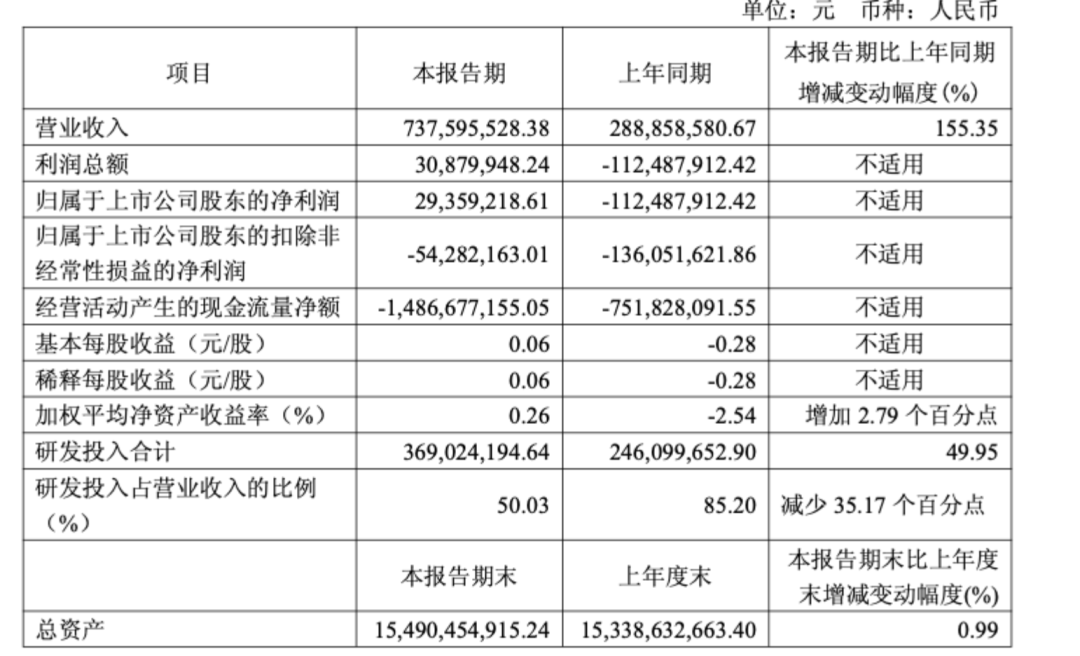 今年一季度,摩尔线程实现营业收入7.38亿元,同比增长155.35%;实现归母净利润2935.92万元,同比扭亏。扣非后归母净利润亏损0.54亿元,亏损同比收窄60.1%。