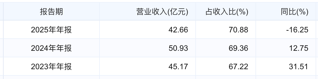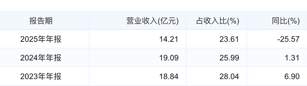2025年,公司在省外营收14.21亿元,同比大幅下降25.57%,营收占比已收缩至不足40%。