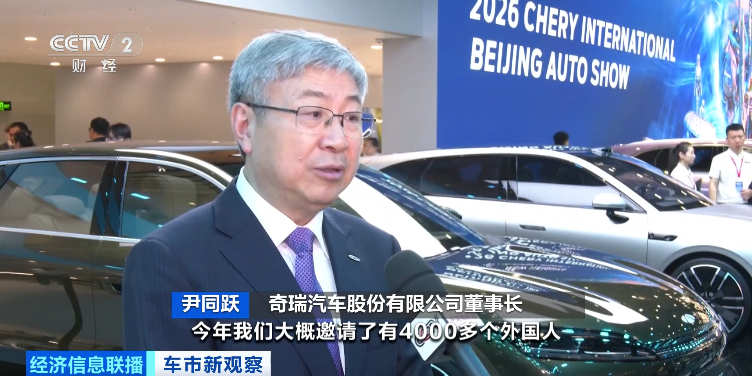 奇瑞汽车股份有限公司董事长尹同跃:今年我们邀请了4000多个外国人参加车展,他们看到中国汽车发展的速度、技术含量、含金量越来越高,特别是现在很多做传统油车的经销商都转向卖新能源汽车和卖智能化汽车,我觉得这也是中国汽车加速国际化的一个非常好的契机。