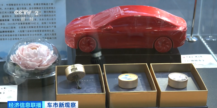 在一个充满古典韵味的展区上,精致的车载香薰、精美的车饰挂件,陶瓷、苏绣等传统技艺的加入为汽车周边产品注入中国文化符号。