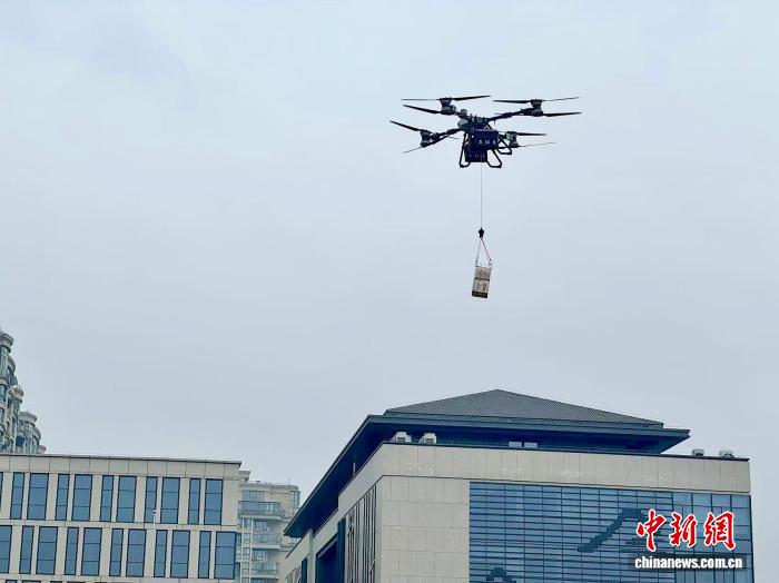 3月17日,浙江绍兴公安无人机模拟运载物资。项菁摄