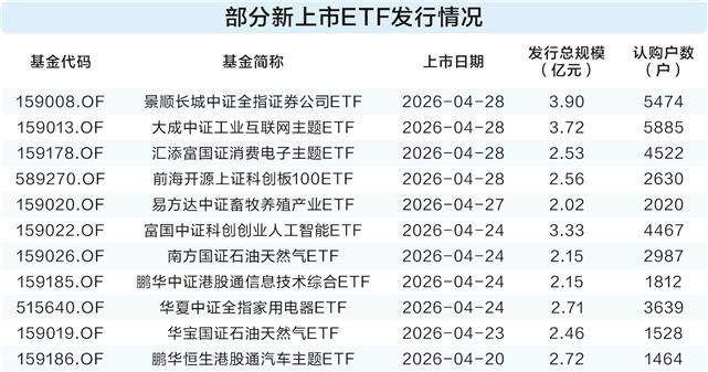 根据Wind统计,截至4月24日,年内一共成立了104只ETF,募集规模为405.96亿元,对应的认购户数为50.20万户,户均认购额度为8.09万元,呈现出户数多、户均金额小的特征。从最新披露的2025年年报数据看,一共有超过460只股票ETF的个人投资者持有份额占比超过50%。其中,个人投资者份额持有占比超过80%的ETF,达到179只。