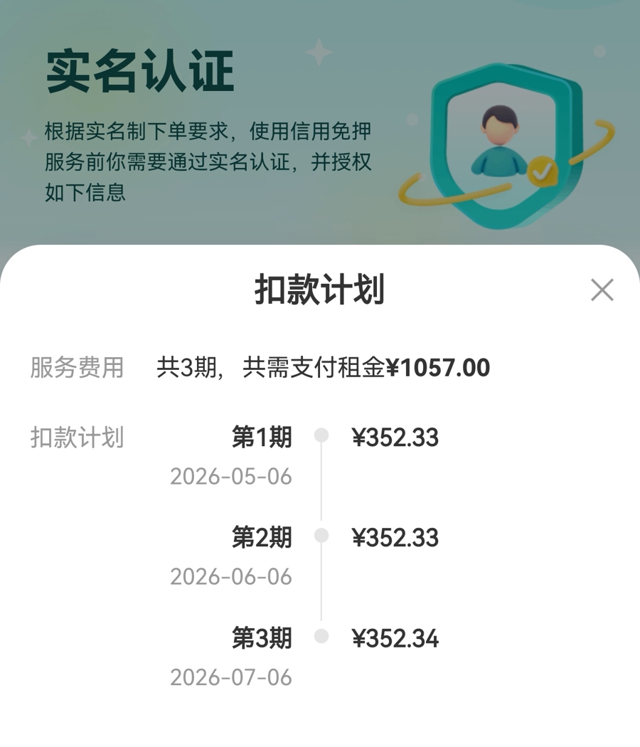 实际租金总额1057元。手机截屏制图