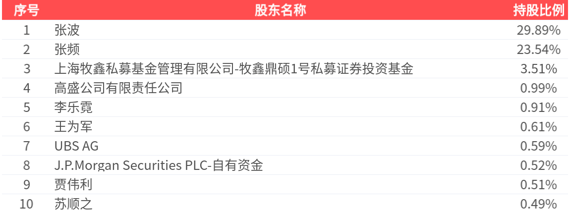 公司股东户数为2.01万户,前十大股东持股数量为3.46亿股,占总股本比例为61.57%,前十大股东持股情况如下: