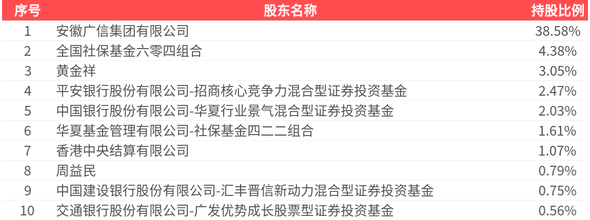 公司股东户数为2.13万户,前十大股东持股数量为5.03亿股,占总股本比例为55.29%,前十大股东持股情况如下: