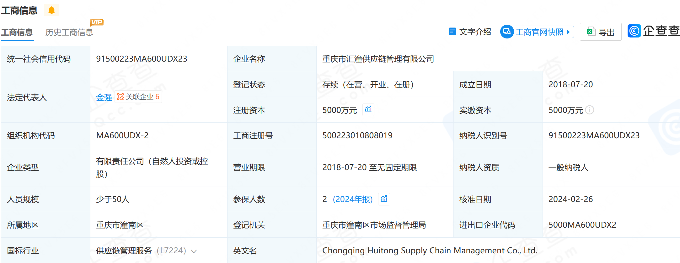 重庆汇潼工商信息(来源:企查查)