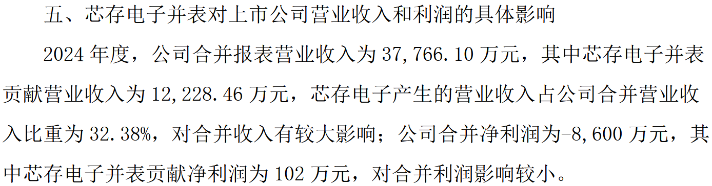 2024年全年,芯存科技实现营收3.29亿元,相比两年前增长超过28倍。但拆解其月度数据可以发现,该标的公司在前8个月仅完成1.25亿元营收,而在并表后的最后两个多月里,营收额达到了1.22亿元。