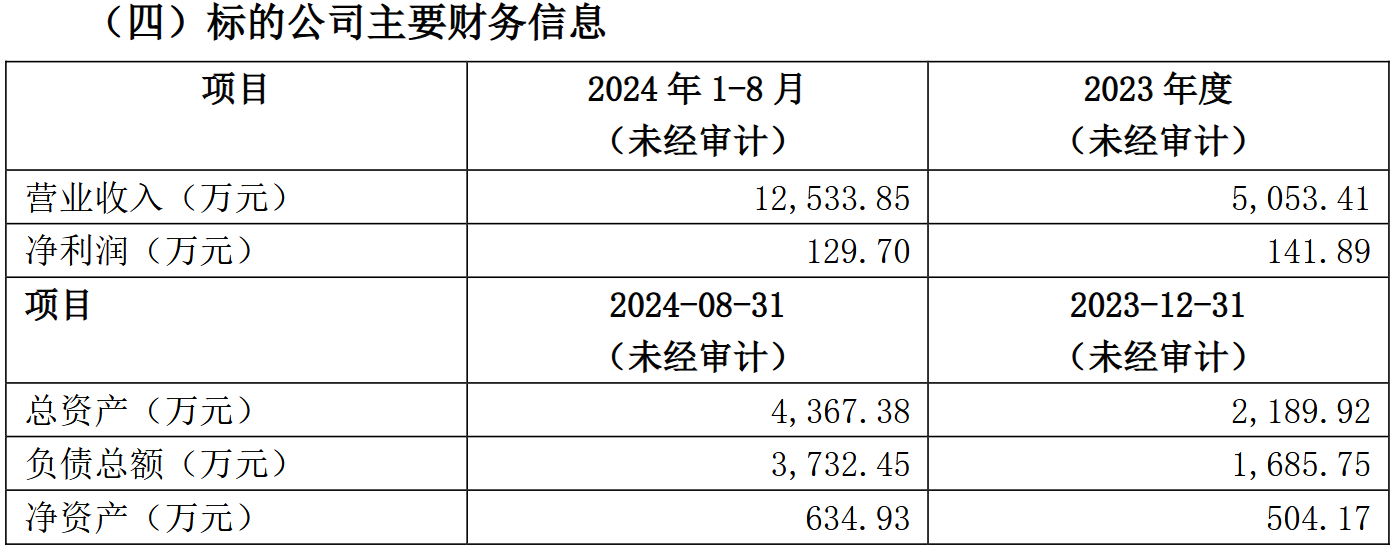 然而,在随后公开的资料中,标的估值约1170万元,较净资产635万元增值率84%;公司增资5800万元,较评估值的溢价达395%,但支撑这一增值率和溢价率的关键依据——如核心客户合同、技术评估报告等——并未得到充分披露。