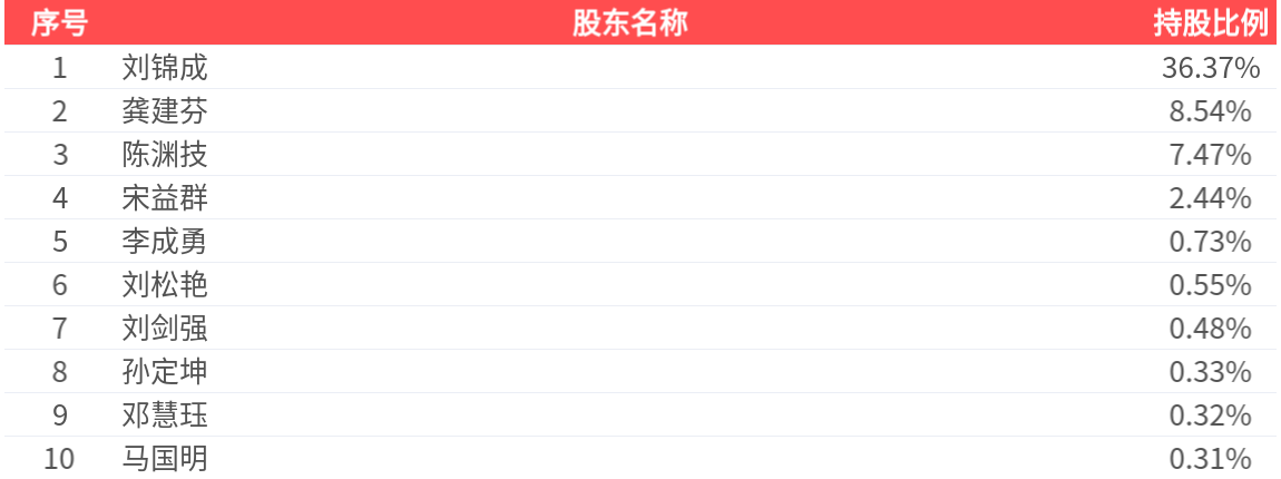 公司股东户数为1.33万户,前十大股东持股数量为4498.60万股,占总股本比例为57.55%,前十大股东持股情况如下: