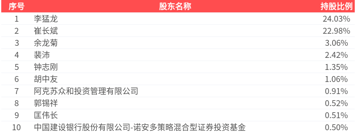 公司股东户数为1.85万户,前十大股东持股数量为2.37亿股,占总股本比例为57.34%,前十大股东持股情况如下: