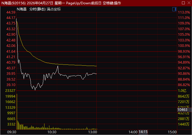 A股市场今天有一只新股上市,为海昌智能,上午盘中该股涨幅一度超过110%。