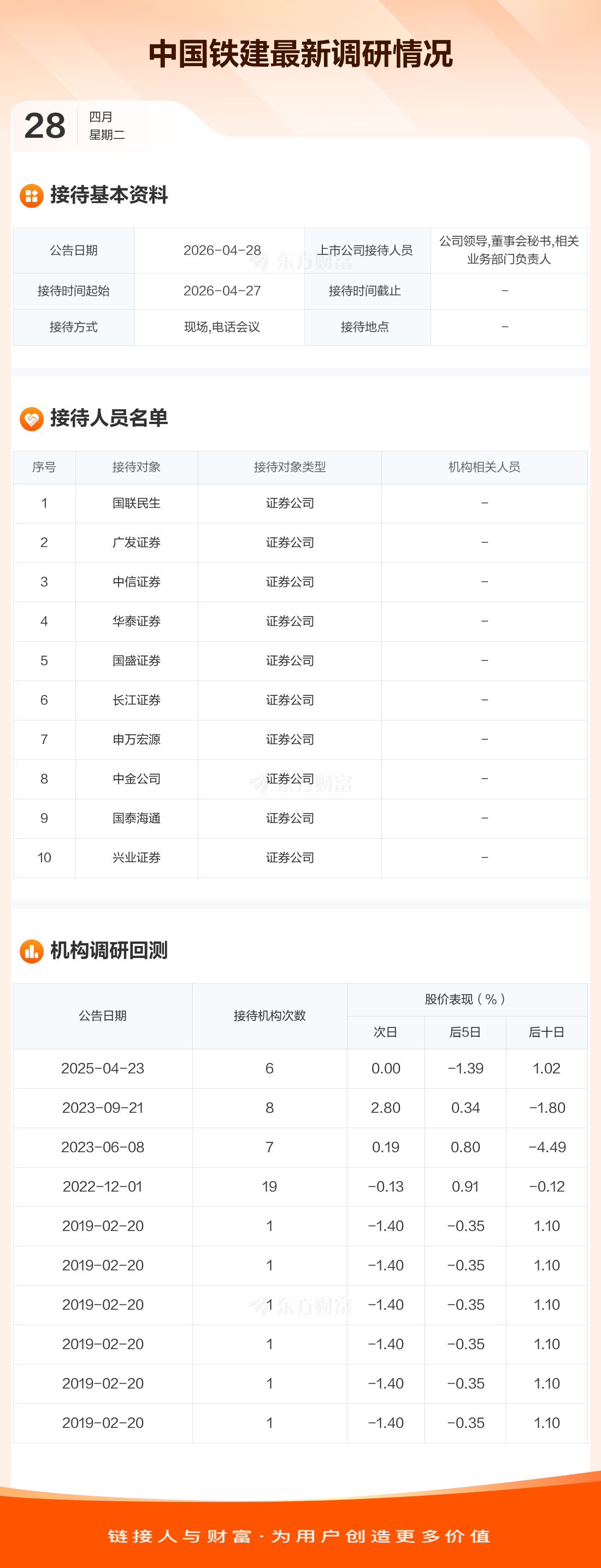 【调研快报】中国铁建接待国联民生等10家机构调研