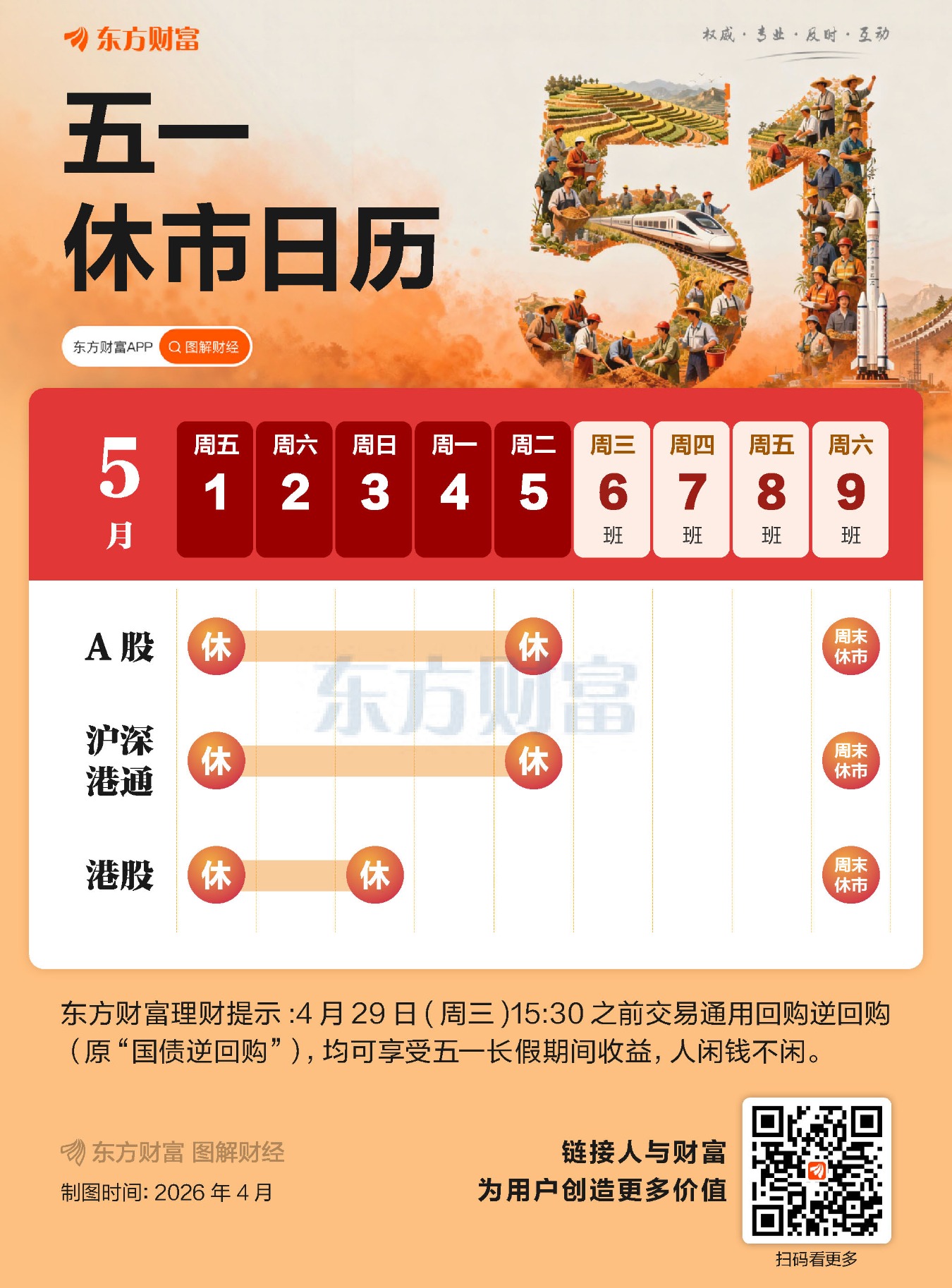 五一休市日历来了!“逆回购”羊毛别忘了薅