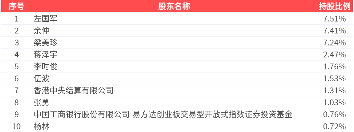 公司股东户数为10.64万户,前十大股东持股数量为1.11亿股,占总股本比例为31.75%,前十大股东持股情况如下: