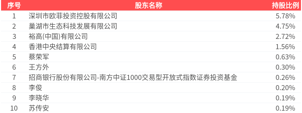 公司股东户数为47.83万户,前十大股东持股数量为5.57亿股,占总股本比例为16.58%,前十大股东持股情况如下:
