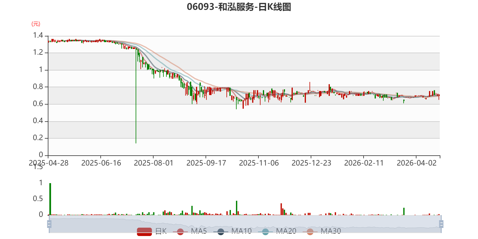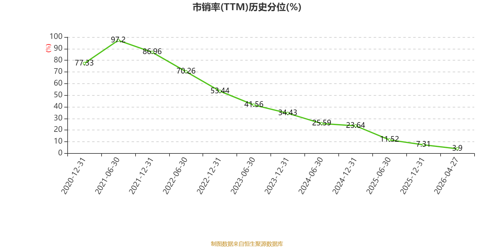 以4月27日收盘价计算,和泓服务目前市净率(TTM)约0.62倍,市销率(TTM)约0.26倍。