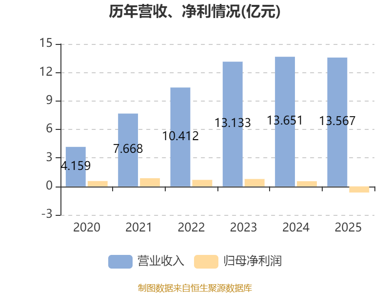 中证智能财讯和泓服务(06093)4月27日披露2025年度报告。报告期内,公司实现营业收入13.57亿元,同比下降0.61%;归母净利润亏损6468.9万元,上年同期盈利5438.8万元;据报告显示,和泓服务基本每股收益为-0.1155元,平均净资产收益率为-10.34%。