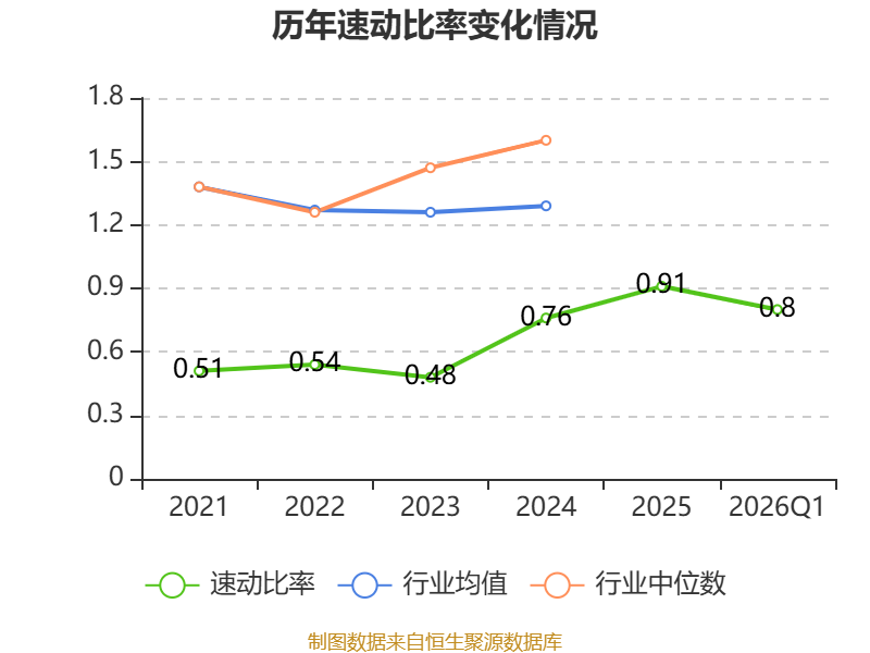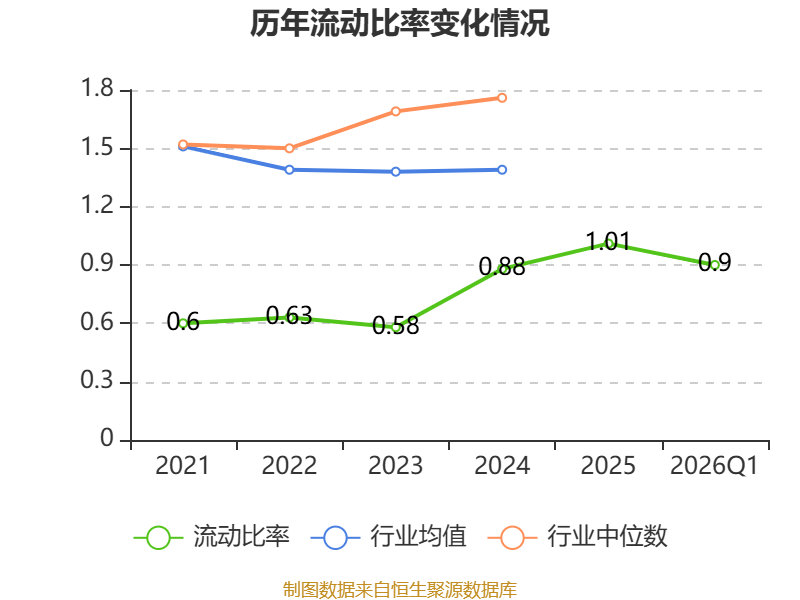 2026年第一季度,公司流动比率为0.9,速动比率为0.8。