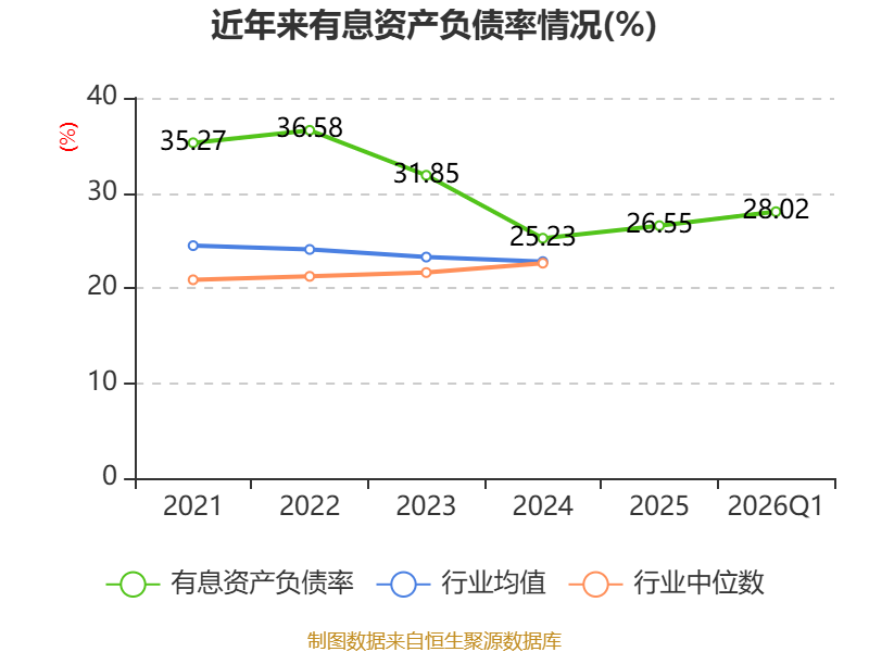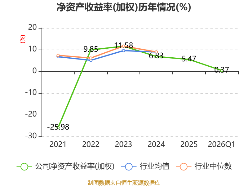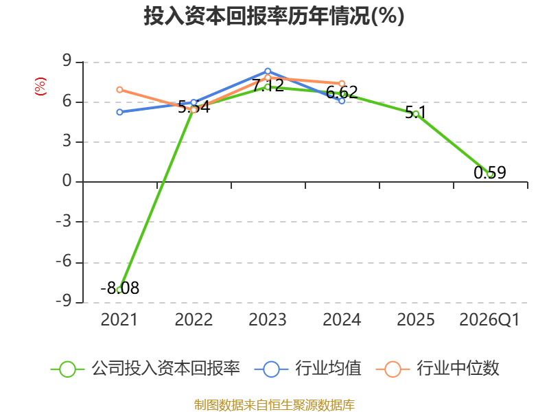 盈利能力方面, 2026年一季度公司加权平均净资产收益率为0.37%,同比下降1.04个百分点。公司2026年第一季度投入资本回报率为0.59%,较上年同期下降0.68个百分点。