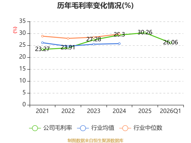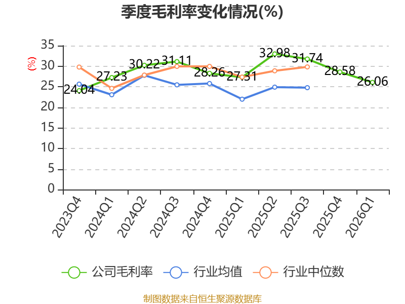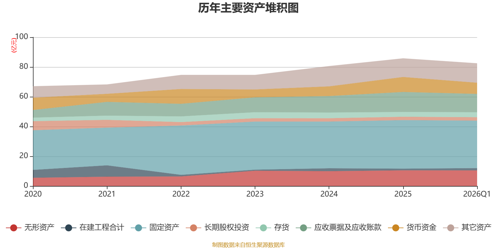 资产重大变化方面,截至2026年一季度末,公司货币资金较上年末减少25.55%,占公司总资产比重下降2.65个百分点;交易性金融资产合计较上年末增加76.45%,占公司总资产比重上升1.66个百分点;应收票据及应收账款较上年末减少8.61%,占公司总资产比重下降0.77个百分点;应收款项融资较上年末减少43.02%,占公司总资产比重下降0.74个百分点。