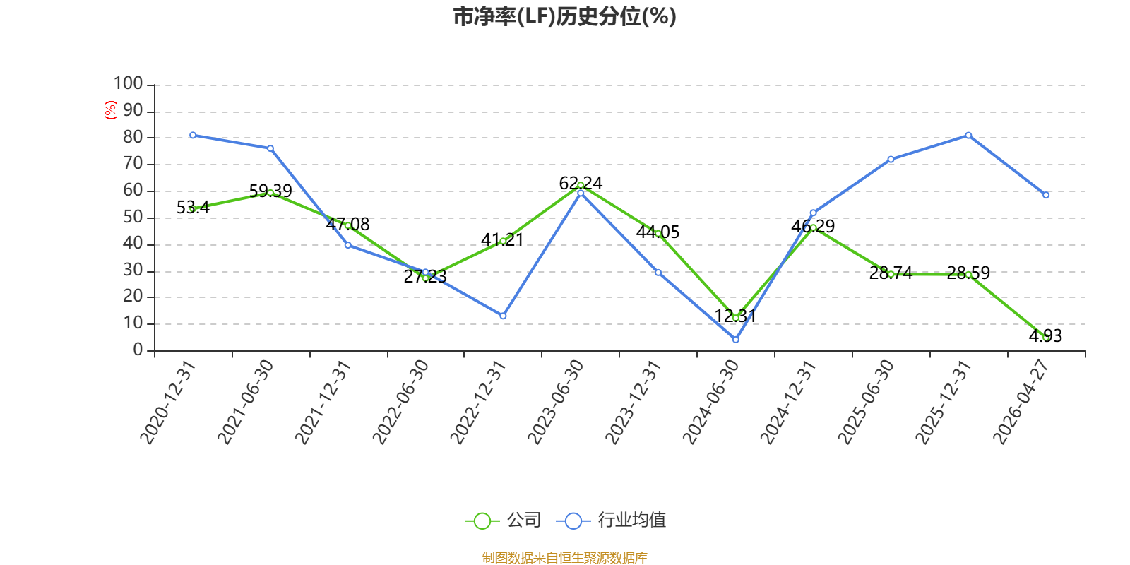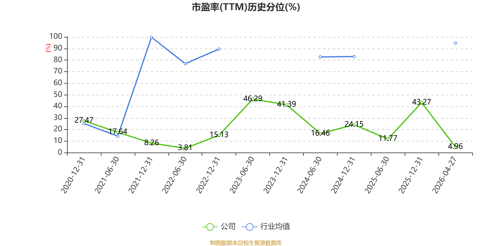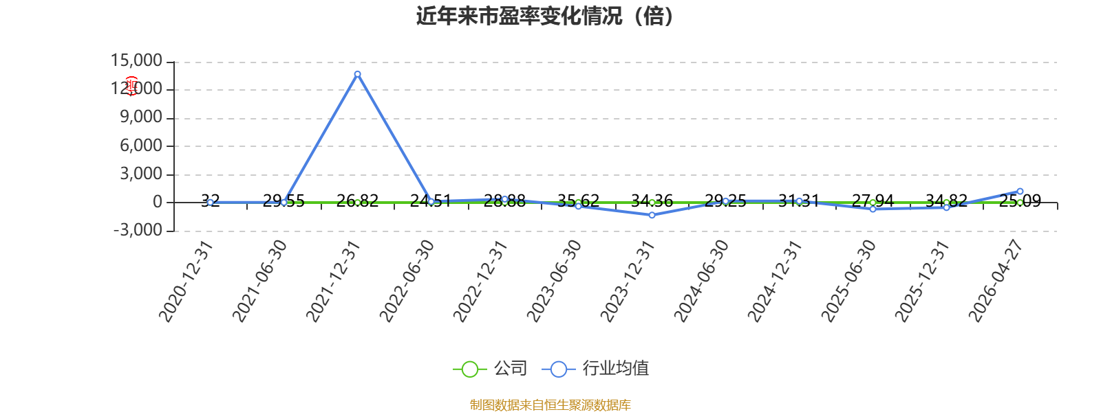 市盈率、市净率为负时,不显示当期分位数,会导致折线图中断。