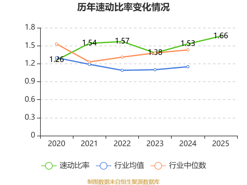 2025年,公司流动比率为2.56,速动比率为1.66。