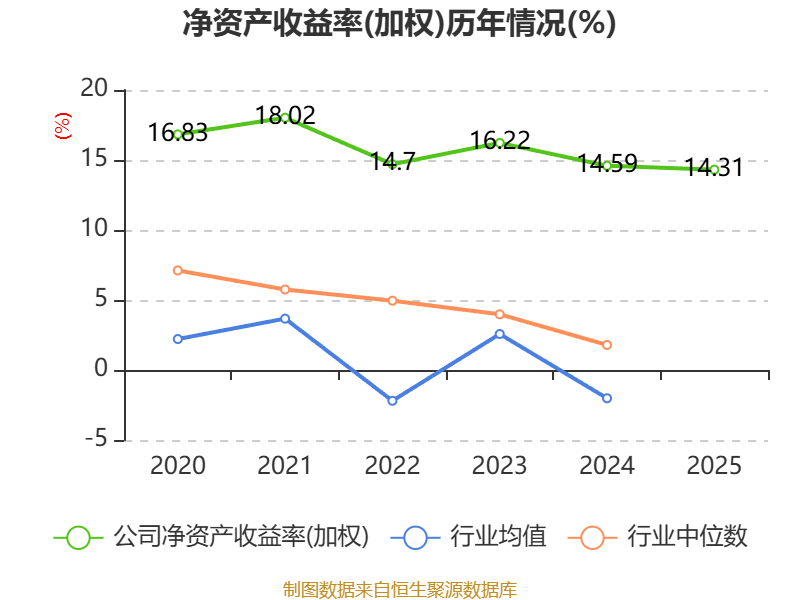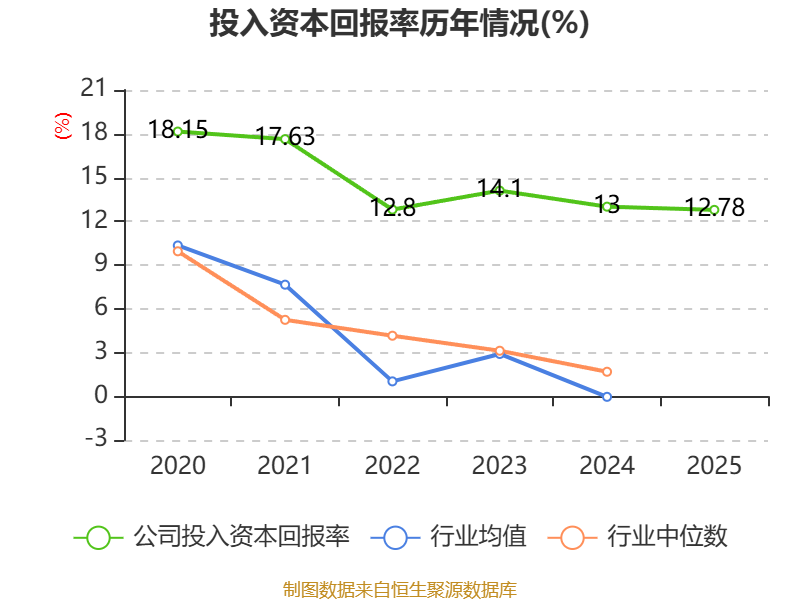 数据显示,2025年公司加权平均净资产收益率为14.31%,较上年同期下降0.28个百分点。公司2025年投入资本回报率为12.78%,较上年同期下降0.22个百分点。