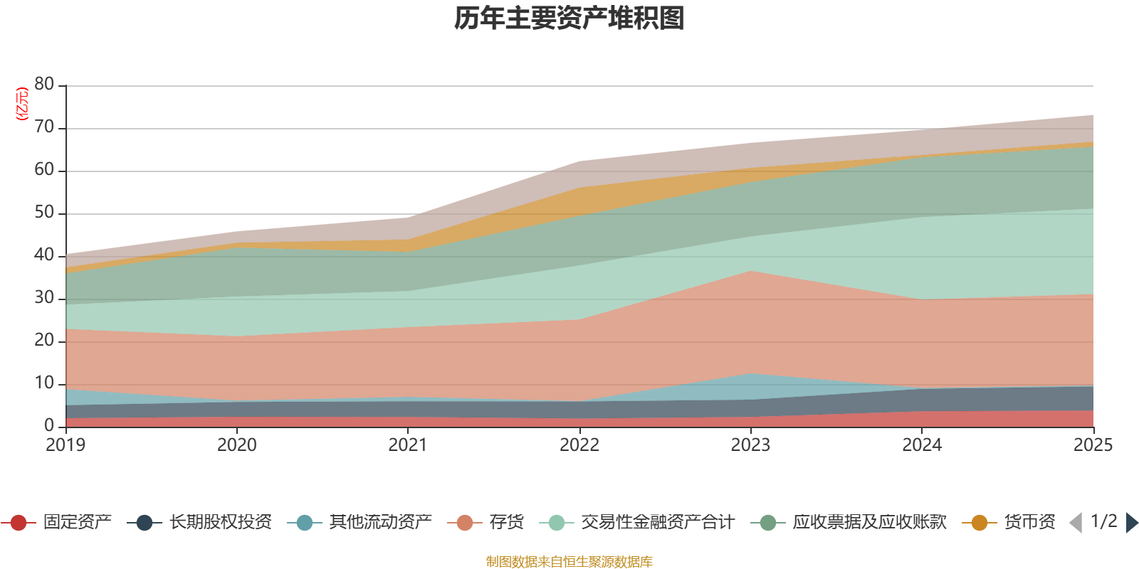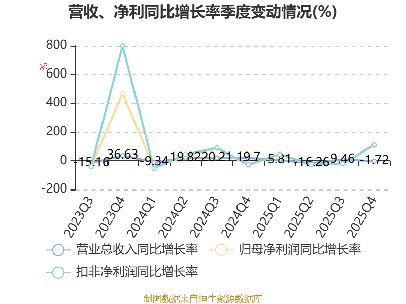 资产重大变化方面,截至2025年末,公司货币资金较上年末增加120.22%,占公司总资产比重上升0.88个百分点;其他非流动资产较上年末减少79.8%,占公司总资产比重下降0.84个百分点;交易性金融资产合计较上年末增加3.26%,占公司总资产比重下降0.46个百分点;存货较上年末增加3.44%,占公司总资产比重下降0.44个百分点。