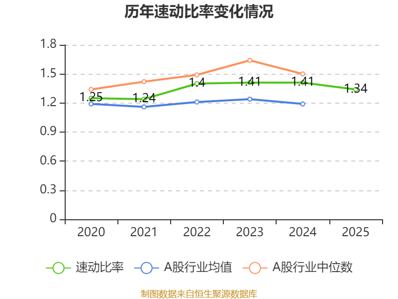 2025年,公司流动比率为1.81,速动比率为1.34。