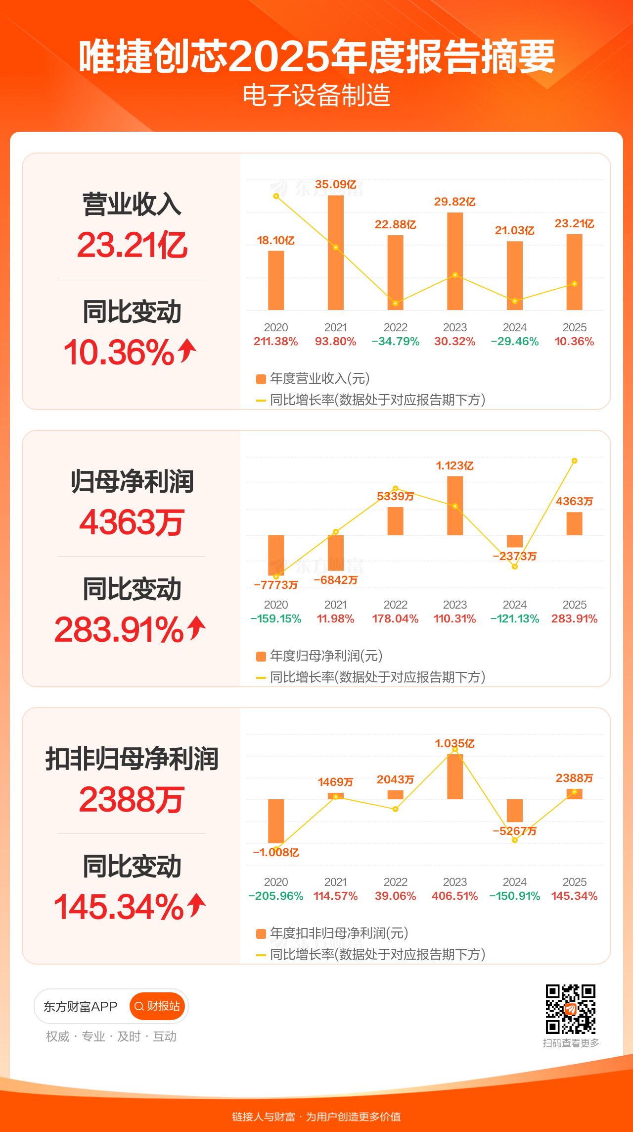 图解财报:唯捷创芯全年归母净利润4363.23万元,同比增长283.91%