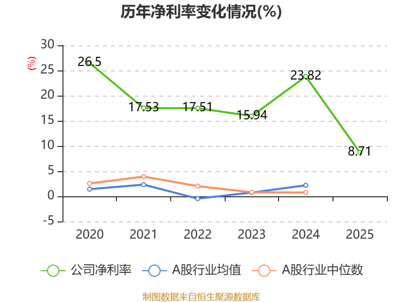 数据显示,2025年公司平均净资产收益率为28.42%,较上年同期下降21.97个百分点。
