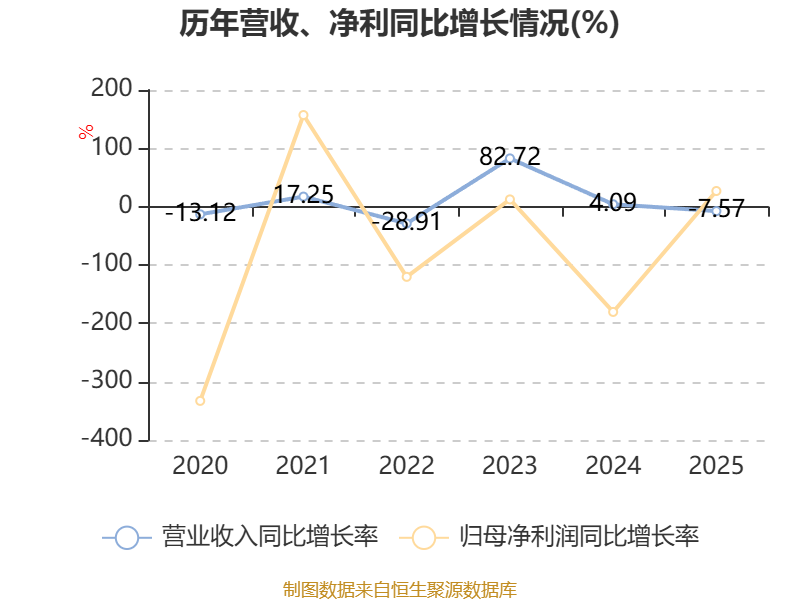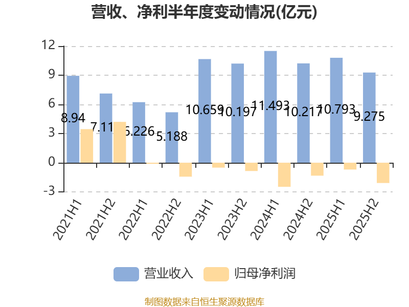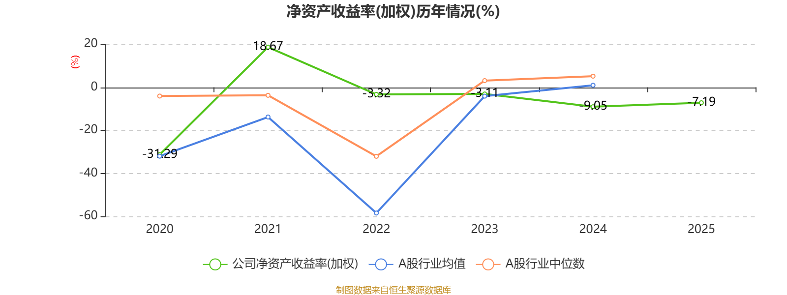 数据显示,2025年公司平均净资产收益率为-7.19%,较上年同期上升1.86个百分点。