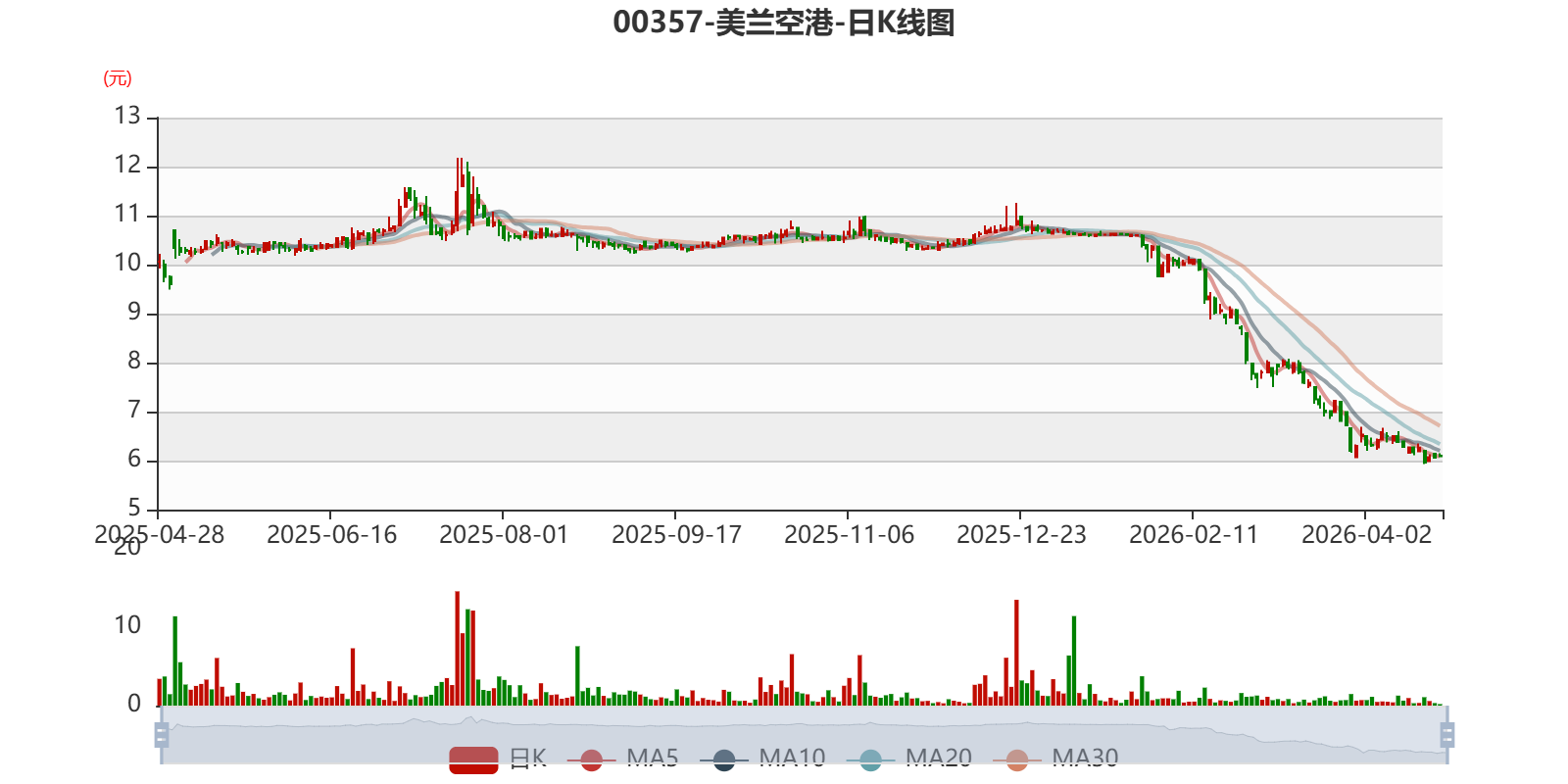 中证智能财讯美兰空港(00357)4月27日披露2025年度报告。报告期内,公司实现营业收入20.07亿元,同比下降7.57%;归母净利润亏损2.79亿元,上年同期亏损3.81亿元;据报告显示,美兰空港基本每股收益为-0.59元,平均净资产收益率为-7.19%。