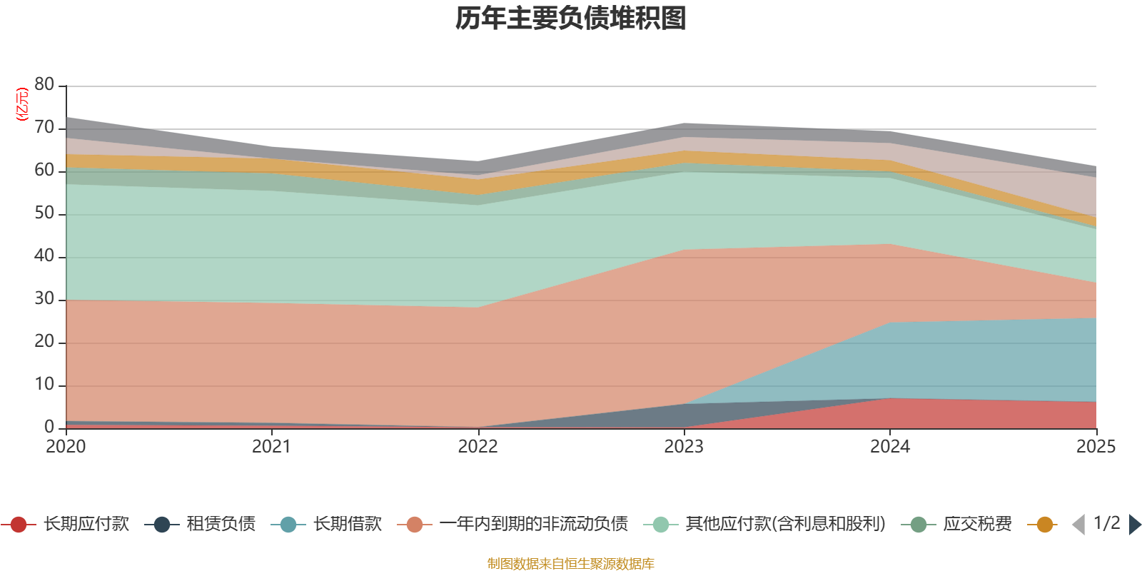 负债重大变化方面,截至2025年末,公司一年内到期的非流动负债较上期末减少54.87%,占公司总资产比重下降8.34个百分点;短期借款较上期末增加132.43%,占公司总资产比重上升5.74个百分点;长期借款较上期末增加10.61%,占公司总资产比重上升3.63个百分点;其他应付款(含利息和股利)较上期末减少19.11%,占公司总资产比重下降1.46个百分点。