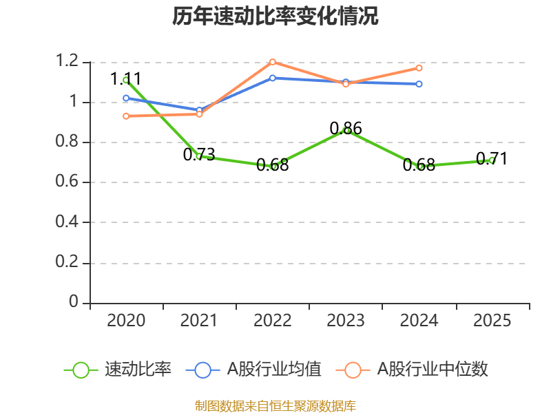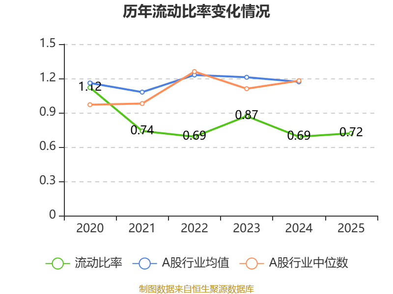 2025年,公司流动比率为0.72,速动比率为0.71。