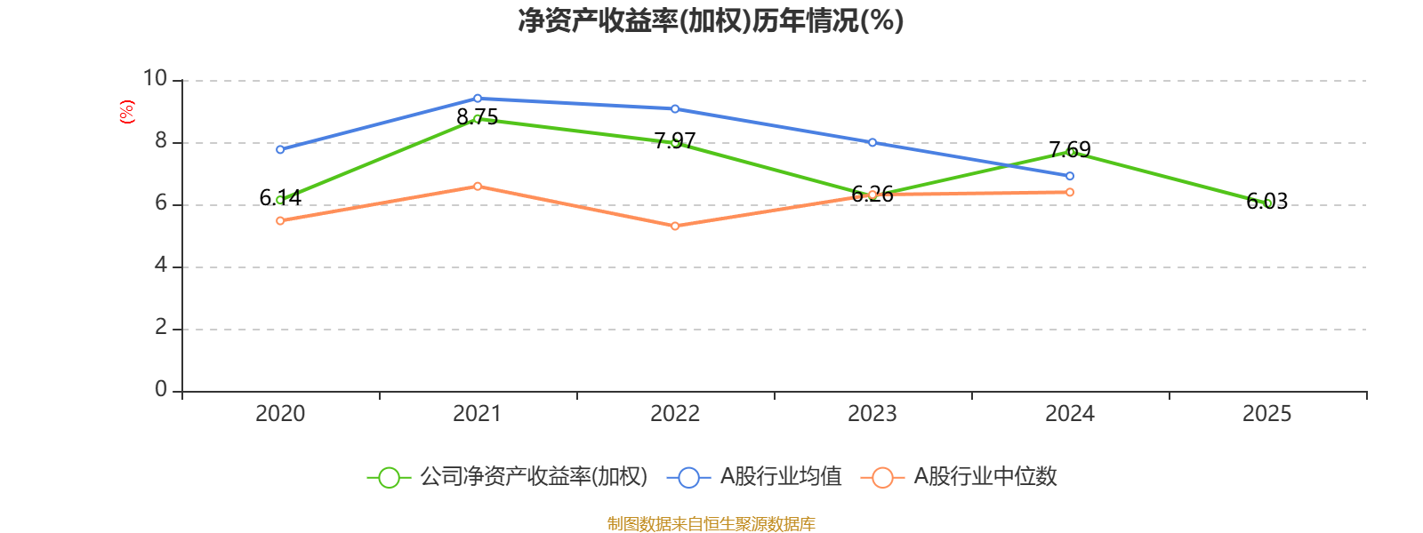 数据显示,2025年公司平均净资产收益率为6.03%,较上年同期下降1.66个百分点。