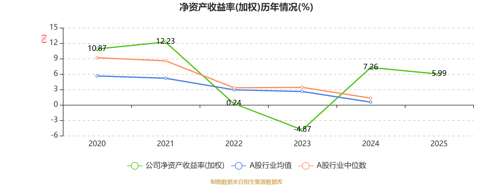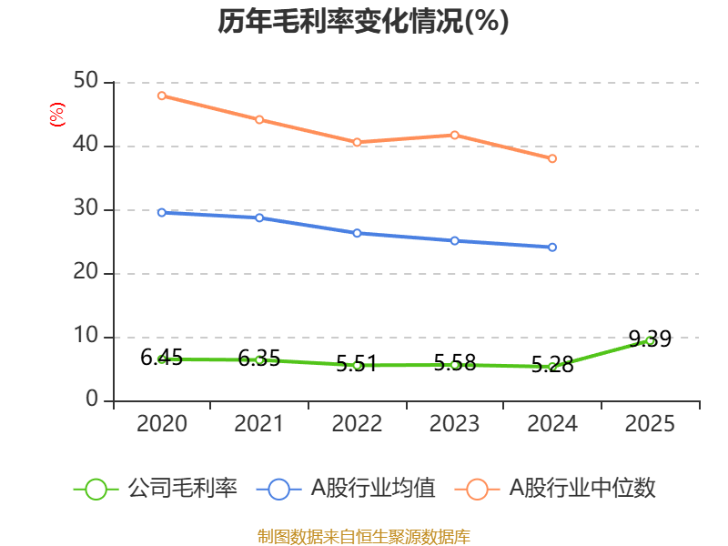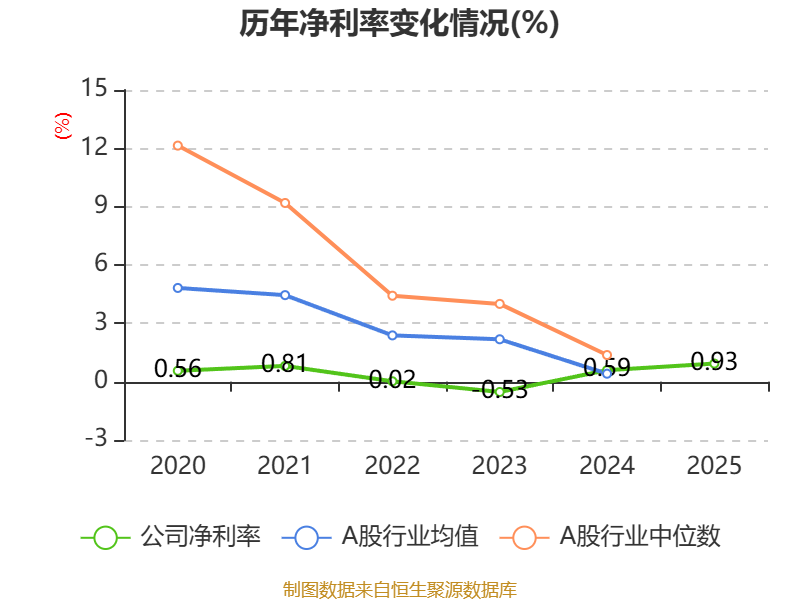 数据显示,2025年公司平均净资产收益率为5.99%,较上年同期下降1.27个百分点。