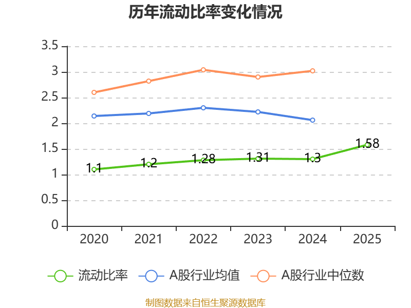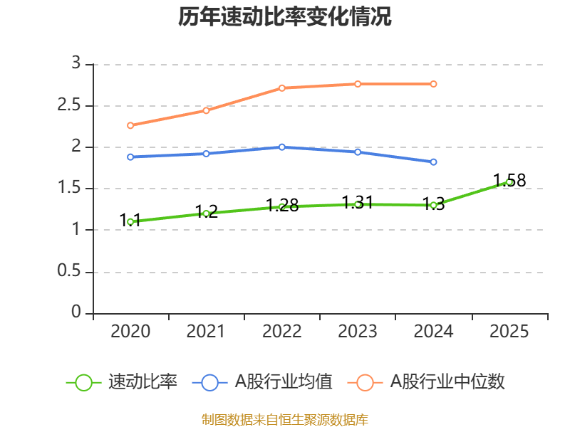 2025年,公司流动比率为1.58,速动比率为1.58。