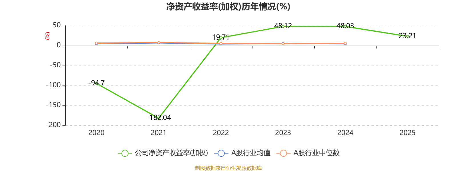 数据显示,2025年公司平均净资产收益率为23.21%,较上年同期下降24.82个百分点。