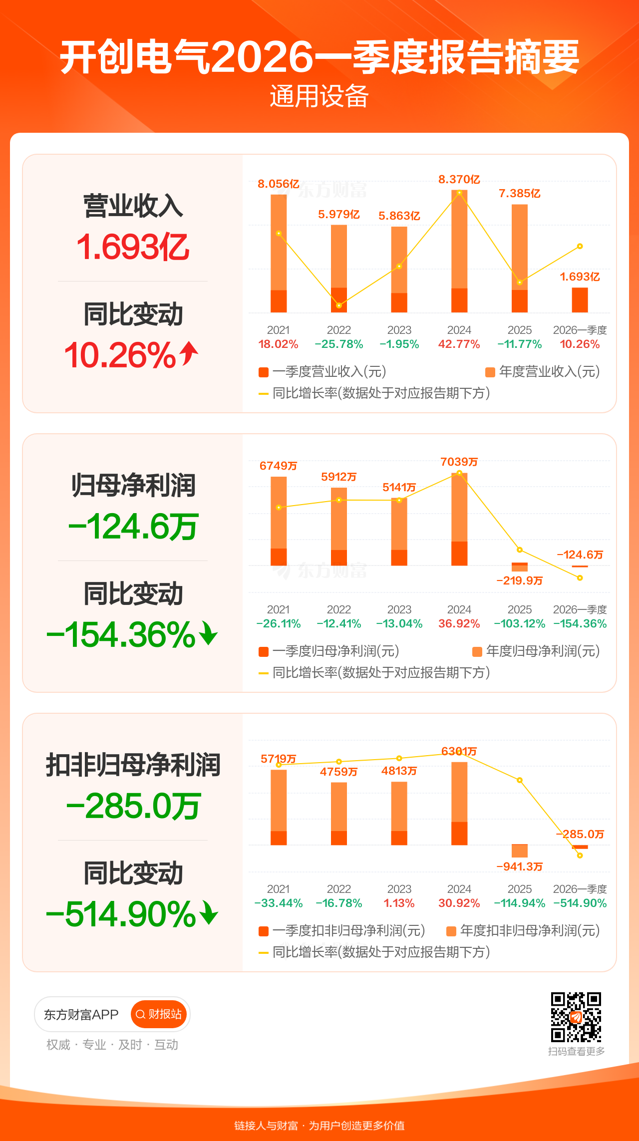 图解财报:开创电气一季度归母净利润-124.62万元,上年同期229.24万元