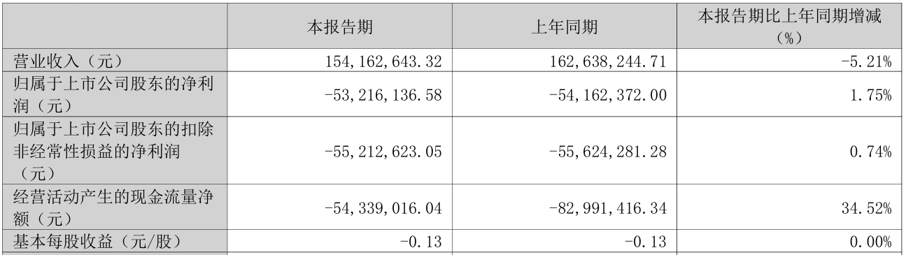 4月27日,火星人(300894)公告,公司2026年第一季度实现营业收入1.54亿元,同比下降5.21%;归属于上市公司股东的净利润为-5321.61万元,上年同期为-5416.24万元,亏损收窄1.75%;经营活动产生的现金流量净额为-5433.90万元,同比改善34.52%。