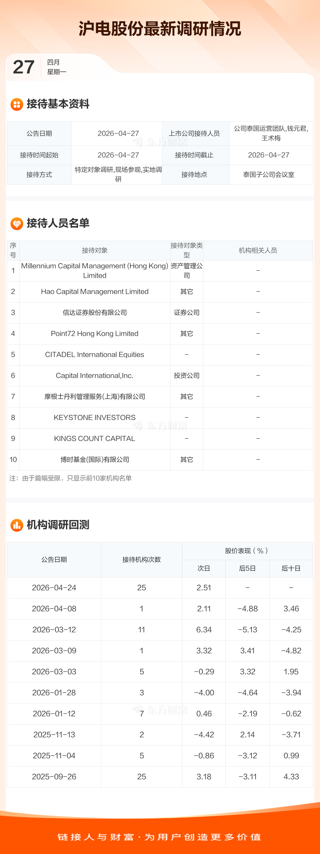 【调研快报】沪电股份接待Millennium Capital Management (Hong Kong) Limited等39家机构调研
